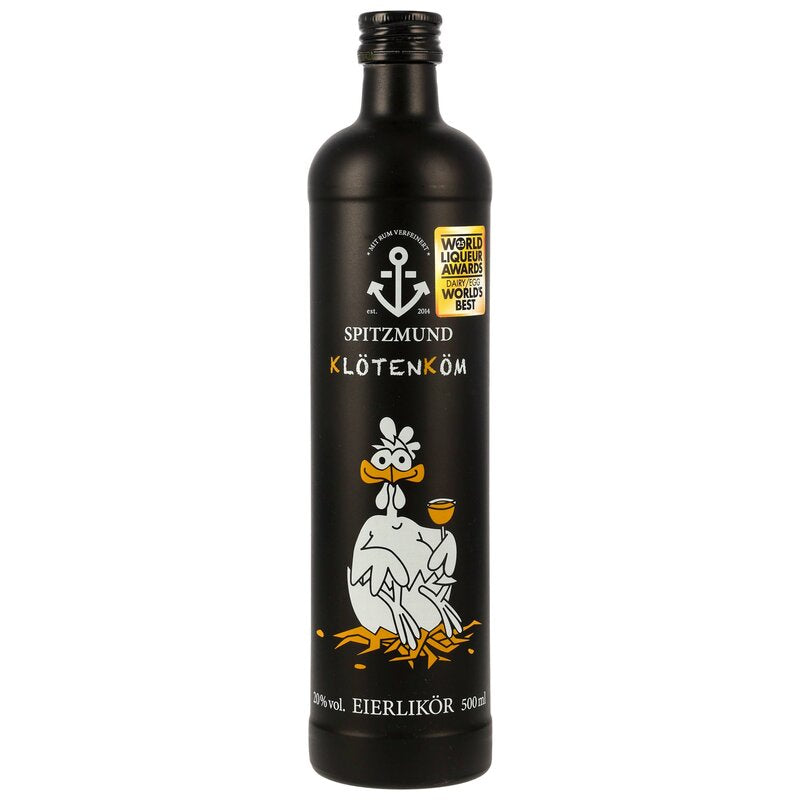Besonderheiten: Der Klötenköm Eierlikör von Spitzmund präsentiert sich in einer neuen Ausstattung für das Jahr 2026. Dieser mehrfach prämierte Eierlikör wird mit mehr Eigelb als gesetzlich vorgeschrieben hergestellt und enthält Eier aus KAT-zertifizierten Betrieben. Verfeinert mit natürlicher Vanille und hochwertigem jamaikanischem Rum, ist er frei von Laktose, Gluten und Farbstoffen. Die schwarze Keramikflasche ziert eine Illustration des Huhns Nikola, gestaltet von Comiczeichner Volker Nökel, bekannt aus der "Werner"-Reihe.