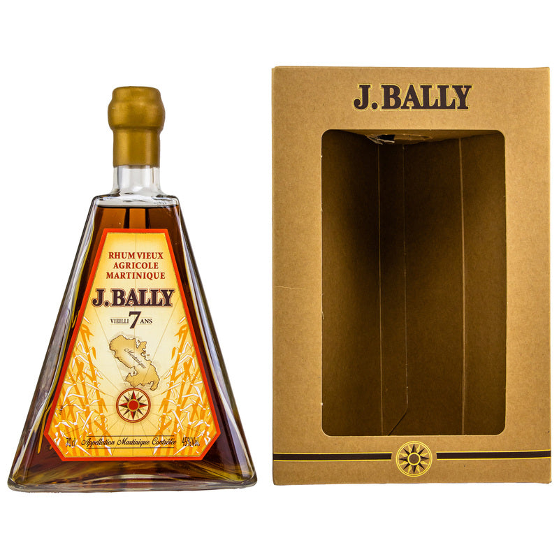 Besonderheiten: Dieser 7 Jahre gereifte Rhum Agricole aus der renommierten J.Bally-Destillerie auf Martinique besticht durch seine pyramidenförmige Flasche, die seit den 1930er Jahren unverändert ist. Die Reifung in Eichenfässern verleiht ihm eine komplexe Aromatik, die die Tradition und Handwerkskunst der Destillerie widerspiegelt.