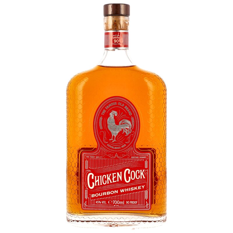 Besonderheiten: Der Chicken Cock Bourbon Whiskey blickt auf eine lange Geschichte zurück, die bis ins Jahr 1856 reicht, als er in Paris, Kentucky, gegründet wurde. Während der Prohibitionszeit erlangte er Kultstatus und wurde heimlich in Dosen serviert, um den Gästen von Speakeasies weiterhin hochwertigen Bourbon anbieten zu können. Heute wird er in Bardstown, Kentucky, destilliert, gereift und abgefüllt.