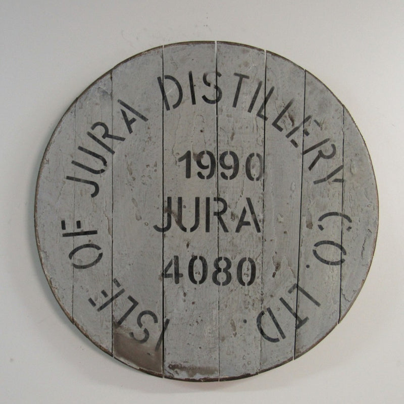 Originaler Fassdeckel aus der Jura Whiskybrennerei. Das dazugehörige Fass wurde 1990 zuletzt befüllt. Um höchste Qualität zu gewährleisten, wurde es sorgsam bei unseren Lieferanten ausgesucht und wird für Sie in liebevoller Handarbeit unserer Tischler vollendet. Als dekoratives Highlight eines Zimmers oder exklusiver Tisch.