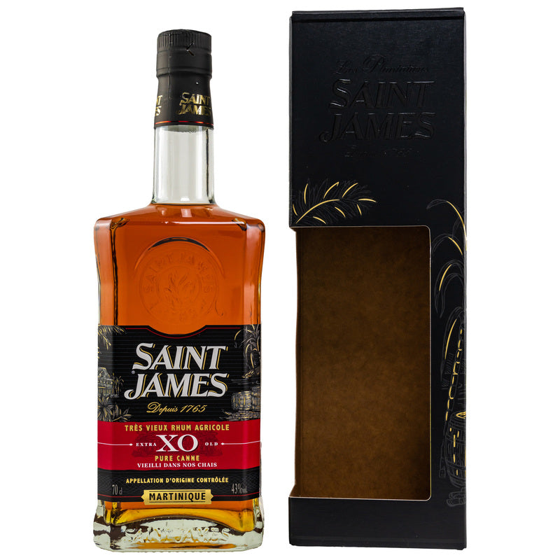 Special features: The newly designed packaging of Saint James XO Rum reflects the distinctive character of this French rum. The rum is not chill-filtered and contains no coloring, which preserves the purity of the distillate.