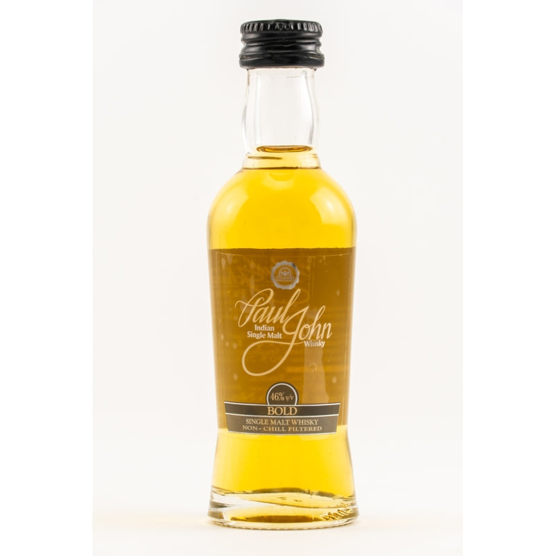 Special features: The Paul John Bold is a smoky single malt whisky from the Indian distillery John Distilleries. It is made from Indian 6-row malted barley and refined with imported Islay and Aberdeen peat. After distillation in traditional copper pot stills, the whisky matures in American oak barrels, giving it depth and complexity. The miniature format of 0.05 liters allows for an affordable entry into the world of this characterful whisky.