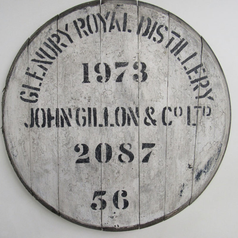 Original cask lid from the Glenury Royal distillery, which closed in 1985. The corresponding cask was last filled in 1973. To ensure the highest quality, it was carefully selected from our suppliers and is lovingly handcrafted by our carpenters for you to complete. As a decorative highlight of a room or an exclusive table.