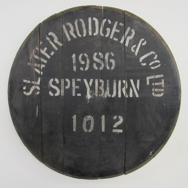 Original barrel lid from the Speyburn distillery. The corresponding barrel was last filled in 1986. To ensure the highest quality, it was carefully selected from our suppliers and will be completed for you by our carpenters with loving craftsmanship. As a decorative highlight of a room or an exclusive table.
