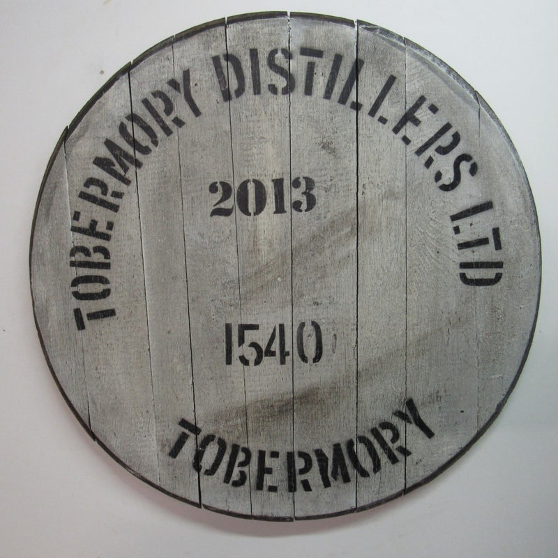 Original cask lid from the Tobermory distillery. The corresponding cask was last filled in 2013. To ensure the highest quality, it was carefully selected from our suppliers and will be completed for you with loving craftsmanship by our carpenters. As a decorative highlight of a room or an exclusive table.