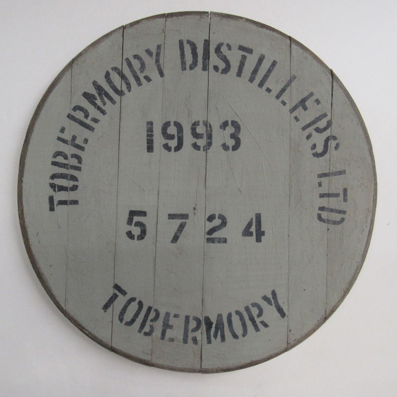 Original cask lid from the Tobermory distillery. The corresponding cask was last filled in 1993. To ensure the highest quality, it was carefully selected from our suppliers and will be completed for you by our carpenters with loving craftsmanship. As a decorative highlight of a room or an exclusive table.