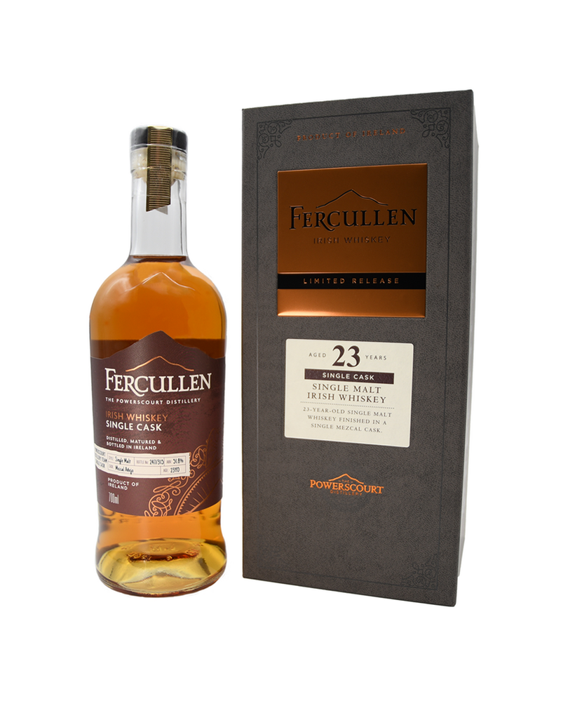 Distillerie/Embouteilleur : La distillerie Powerscourt, dans le comté de Wicklow, en Irlande, est réputée pour sa production traditionnelle de whisky irlandais revisité. Fercullen est l'une de leurs créations spéciales, qui impressionne par sa maturité, sa profondeur de caractère et sa précision artisanale.