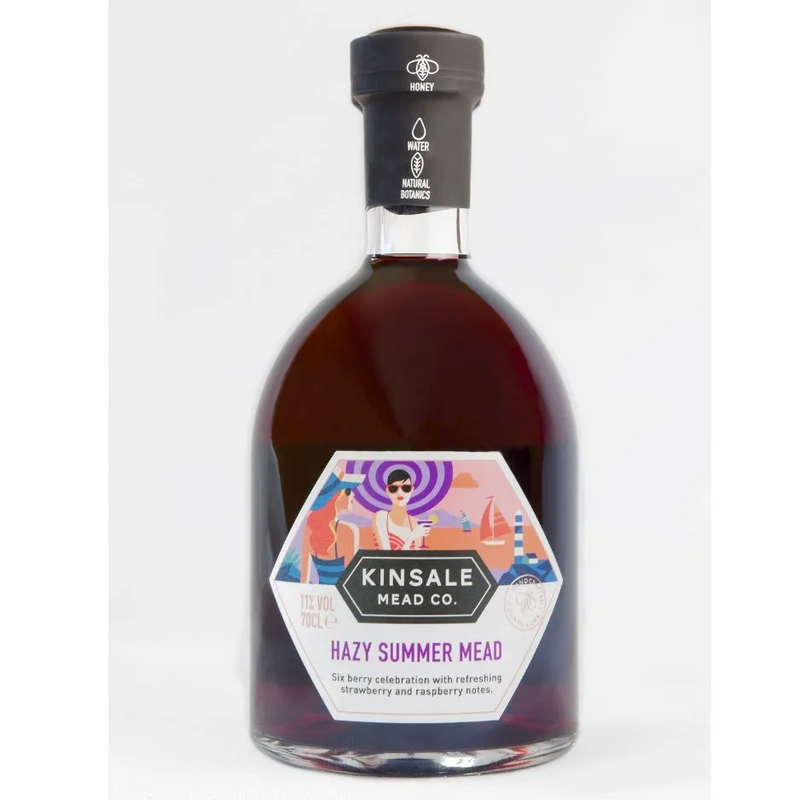 Caractéristiques : Le Kinsale Hazy Summer Mead est vieilli six mois avec un assemblage soigneusement sélectionné de myrtilles, de mûres noires, de cassis et de cerises. Cette composition fruitée lui confère son caractère vibrant et en fait une base idéale pour des cocktails rafraîchissants ou à déguster pur.