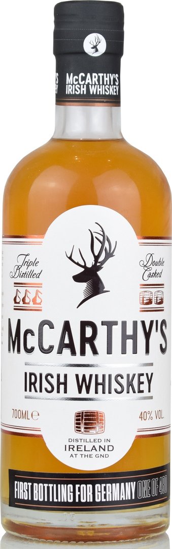 Caractéristiques : Le whisky irlandais McCarthy's allie la riche tradition du clan McCarthy à des techniques de distillation modernes. Embouteilleur indépendant, McCarthy's distille son assemblage dans la célèbre distillerie Great Northern de Dundalk, actuellement la plus grande distillerie indépendante d'Irlande. La production est limitée à 480 bouteilles pour l'Allemagne et l'Autriche. Cet assemblage allie un whisky single grain onctueux à un single malt épicé, distillé trois fois et vieilli en fûts d'ex-bourbon avant de bénéficier d'une finition raffinée en fûts de xérès Oloroso pour plus de profondeur.