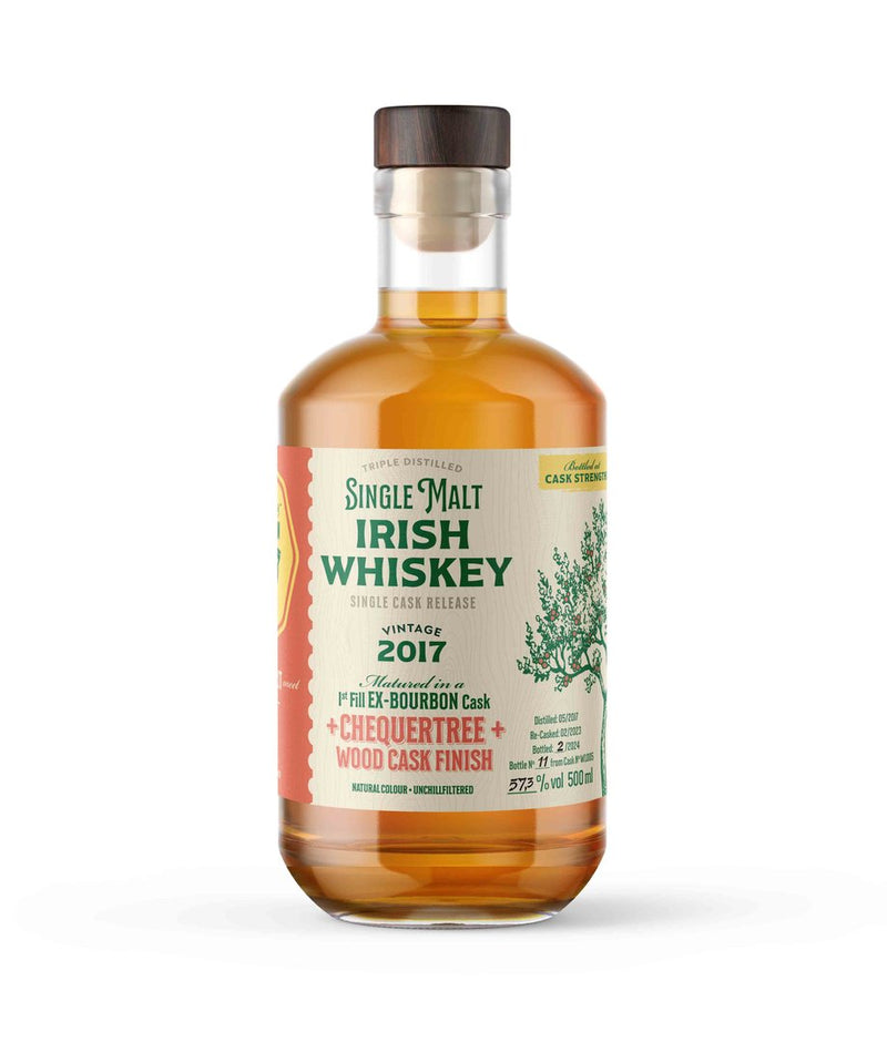 Particularités : Ce projet exceptionnel marque la première incursion dans l'univers du whisky irlandais par l'embouteilleur indépendant Sebastian Büssing (The Spirits Alchemist). Il en résulte cinq whiskies single malt aux finitions expérimentales en bois vierge, dont le Chequertree Wood Finish, vieilli douze mois dans un fût de chêne artisanal de 50 litres et mis en bouteille en édition limitée à 91 bouteilles.