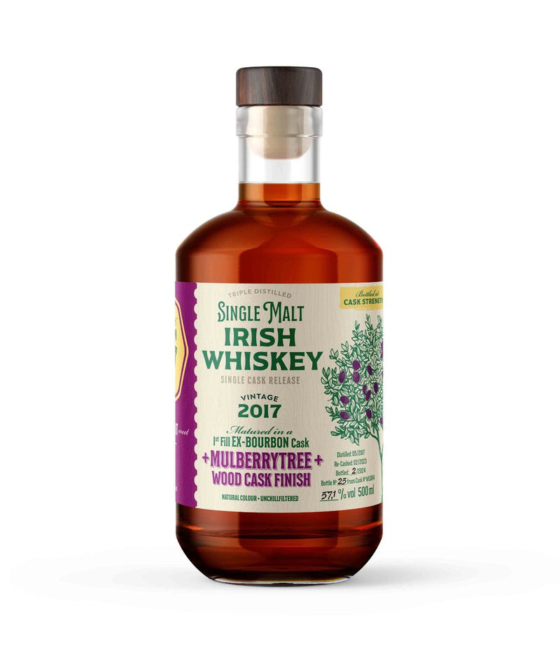 Particularités : Ce single malt irlandais a d'abord vieilli cinq ans en fûts de bourbon de premier remplissage de la distillerie Great Northern, puis a bénéficié d'une finition originale en fût de mûrier de bois vierge artisanal. Après douze mois de maturation en fût de 50 litres, il produit une édition limitée à seulement 90 bouteilles, titrant 57,1 % d'alcool. Issu d'une série de finitions supplémentaires à base de bois de pommier, de poirier, de cerisier et d'amélanchier, chaque bouteille met en valeur une variété impressionnante d'arômes boisés.