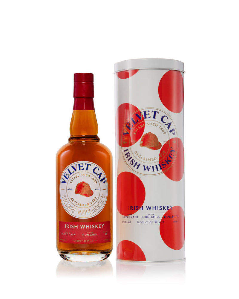 Particularités : Velvet Cap est un whiskey blended qui, après le mélange des différents whiskeys, vieillit à nouveau dans une combinaison de fûts exceptionnelle composée de fûts de Bourbon, de Rye/Stout et de Porto. L'utilisation de fûts de Rye/Stout dans un système rotatif est une approche innovante du maître distillateur John Wilcox et confère au whiskey une complexité particulière. La recette repose sur des connaissances historiques de la Blackwater Distillery, qui retrace le vieillissement traditionnel jusqu'aux années 1960, réinterprétant ainsi un morceau de l'histoire du whiskey irlandais.