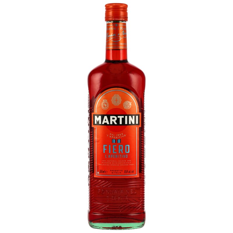 Besonderheiten: Martini Fiero präsentiert sich in einer frischen, neu gestalteten Ausstattung, die den lebendigen Charakter dieses aromatischen Aperitifs unterstreicht. Mit seinem intensiven Aroma und der leuchtend roten Farbe bringt er mediterrane Lebensfreude ins Glas.