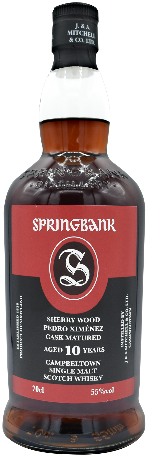 Besonderheiten: Dieser 10-jährige Single Malt Whisky aus der renommierten Springbank Distillery in Campbeltown, Schottland, wurde zunächst sieben Jahre in Refill-Bourbon-Fässern gereift und anschliessend drei Jahre in frischen Pedro Ximénez (PX) Sherry-Fässern aus spanischer Eiche veredelt. Diese doppelte Fassreifung verleiht ihm eine komplexe Aromatik und Tiefe. Abgefüllt mit kräftigen 55% Vol. präsentiert sich dieser Whisky in limitierter Auflage und ohne Zusatz von Farbstoffen oder Kältefiltrierung.